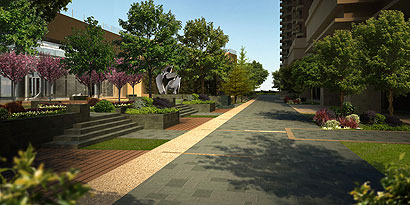 Being modeled on Tokyo Midtown, the project will incorporate artistic elements and vast greenery to provide a haven for residents to escape from the hustle and bustle of the city. The garden will be landscaped as a large MIDTOWN tableau with the 'blue' of the outdoor swimming pool as the core. Green foliage will stretch out to symbolize YOHO resident's spirit to spread happiness and the view from the top will create a pleasing visual effect.