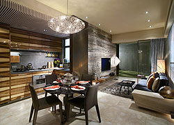 The two-bedroom show flat has a MINE theme to reflect a young person just starting out on his own. The unit has a gross floor area of 653 sq ft with a 38 sq ft balcony. The rectangular dining room is highly functional with an exceptional 10-ft 8-in high ceiling.